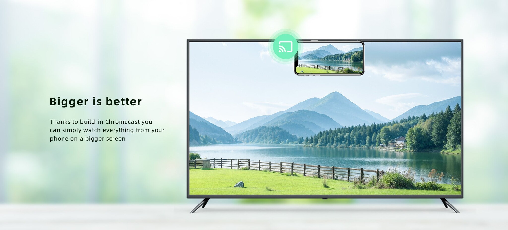 | Official Google TV System (ANDROID 12) | Google Cast, Google Play, Hey Google |
