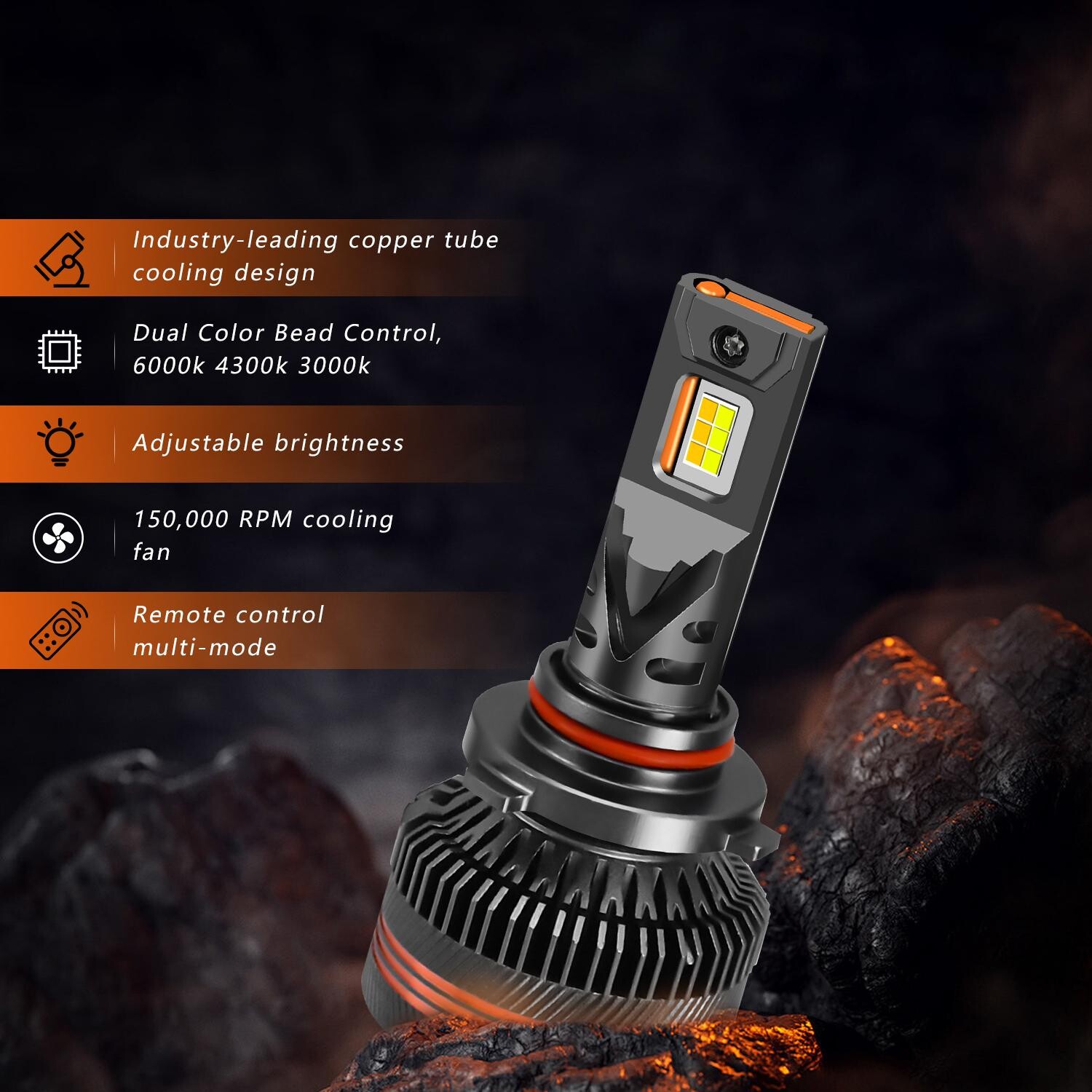 Enhance your driving experience with the pinnacle of personalized visibility! The VISION 9005 LED Headlight Bulbs are designed for intense brightness, superior cooling, and customizable color control, all easily adjustable with a wireless remote.